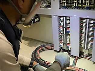 精度の要求される制御、計装工事まで、大きなモーターから小さなコンピューター、休憩室の電気設備工事に至るまで、プラント設備に関するあらゆる工事を施工しています。重要なインフラ設備に関する工事となるので、